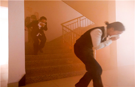 該演練模擬了生活樓發生火災,員工一發現火情就立即撥打了報警電話。參加演練人員聽到警報聲后,迅速拿起打濕的毛巾捂住口鼻,手扶墻體或樓梯扶手,俯身低姿從三樓或二樓,向安全通道有序撤離。全體人員不一會就疏散到了安全地帶,同時連接好消防水帶,迅速跑至火源附近,對準火源有效滅火。